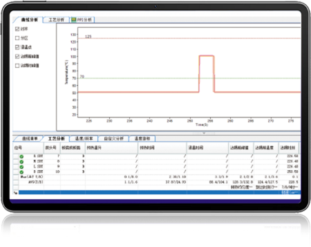 ESAMBER Wave Explorer是用于波峰焊設(shè)備狀況的檢測依 據(jù)檢測數(shù)據(jù),分析各項工藝指標是否適合生產(chǎn)現(xiàn)有的產(chǎn)品,大量 減少設(shè)備能力不足而造成的不良。